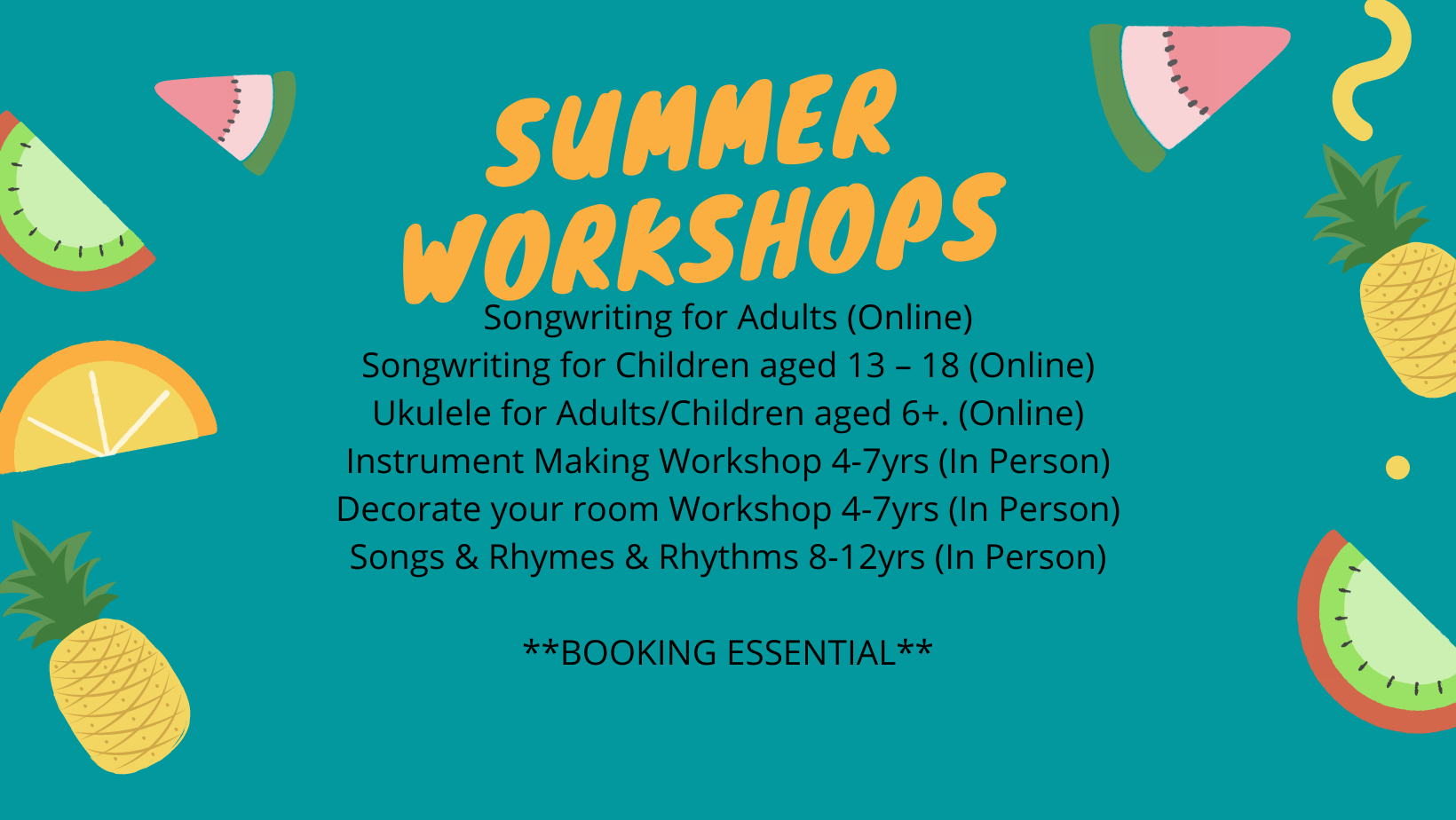 I’ve put together a great schedule of short courses and workshops for the summer – and the great news is that this year – we have music for adults as well as children! You can join us from anywhere around the world for some of our classes (songwriting, ukulele) as they will take place online via zoom. Time to take up a new challenge or hone those skills! See you in class! Bernie xx
